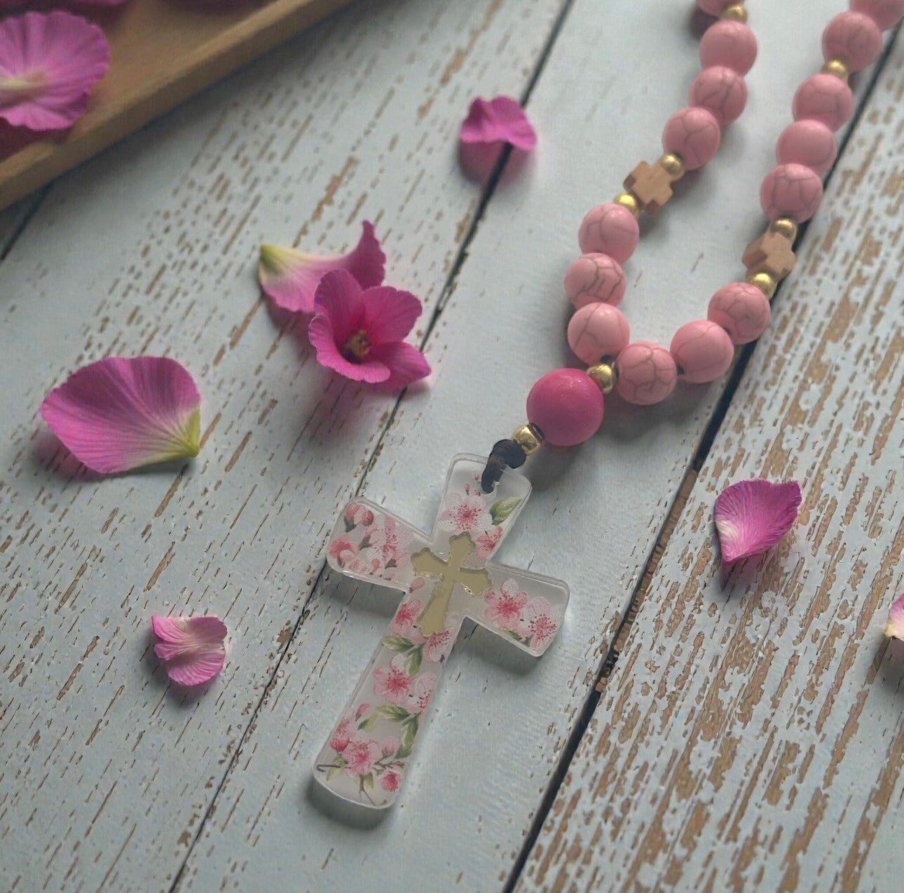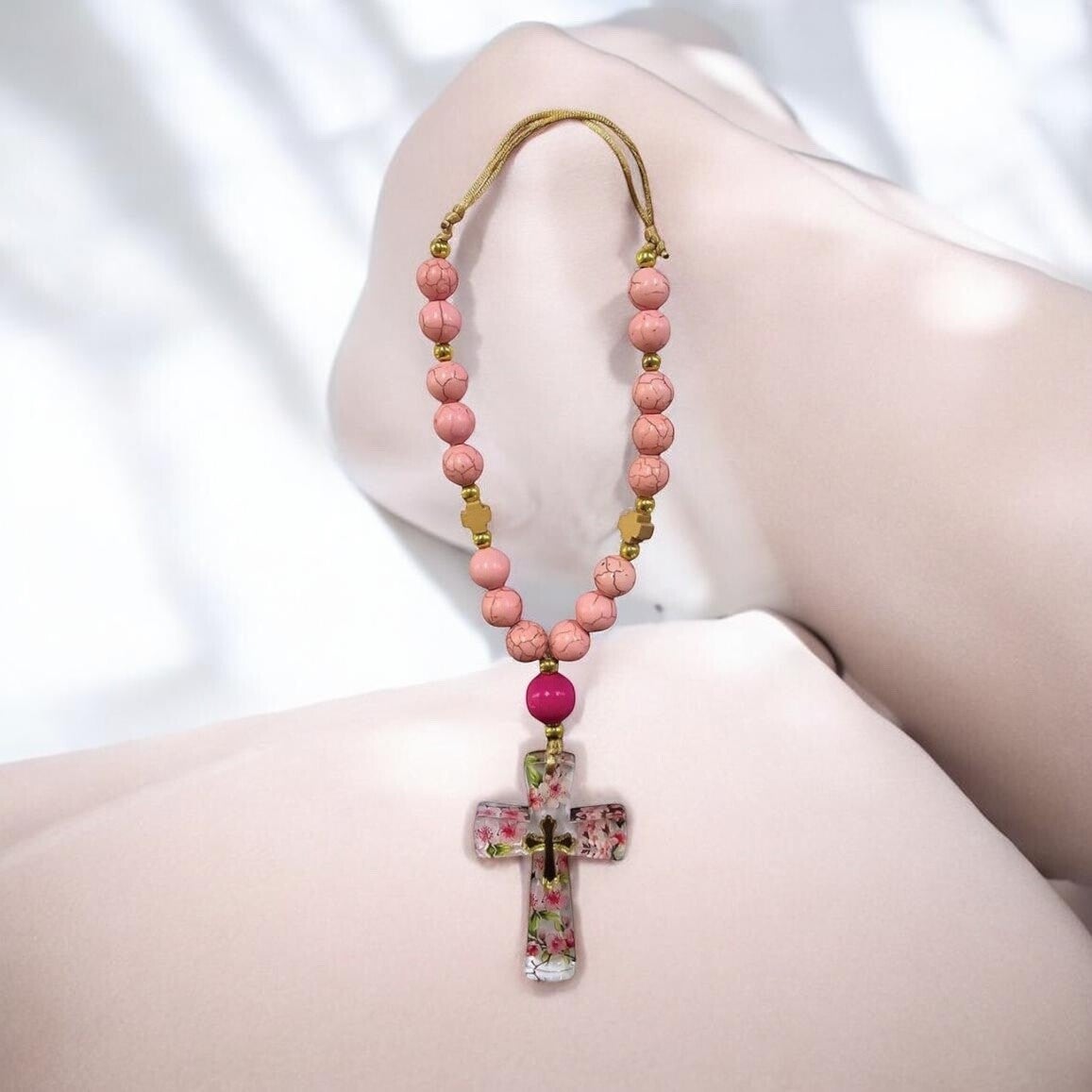 Pink cross car charm