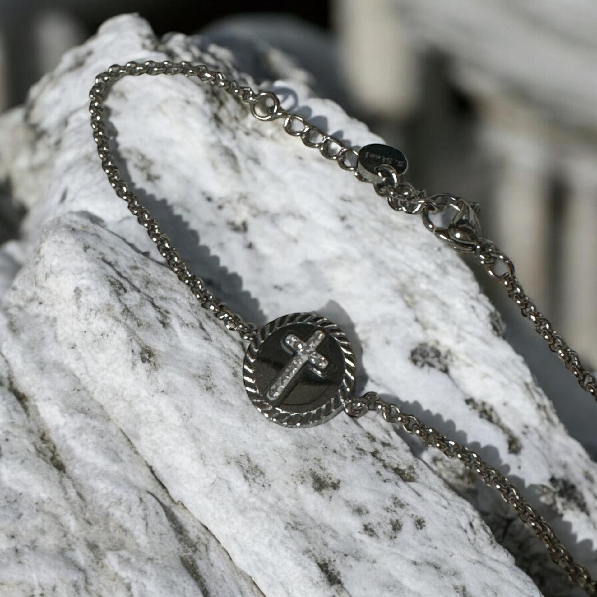 Silver cross coin bracelet